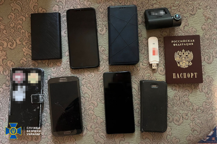 Сообщается, что шпион разоблачен и задержан. В ходе обыска по месту его проживания изъяты доказательства противоправной деятельности - мобильные телефоны, флешносители, компьютерная техника, видеорегистратор и т.д., а также российский паспорт.
