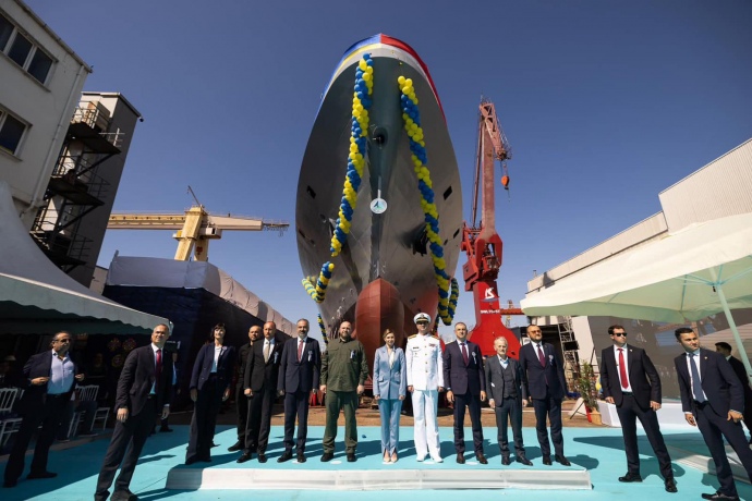 Церемония спуска на воду состоялась на верфи RMK Marine в Стамбуле. На ней были также командующий Военно-морских сил Алексей Неижпапа, владелец компании Baykar Халюк Байрактар и председатель Меджлиса Мустафа Джемилев.