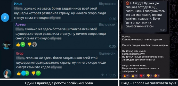 Сотни ботов, активность которых была обнаружена в социальных сетях свидетельствует о том, что вражеская пропаганда будет использовать каждое ваше слово, призыв, действие к дестабилизации обстановки в Украине вашими же руками. Только беда в том, что они виртуальные, а люди, которые вчера сопротивлялись и препятствовали законным действиям власти - реальные (поэтому и ответственность будет реальная, а не виртуальная)".