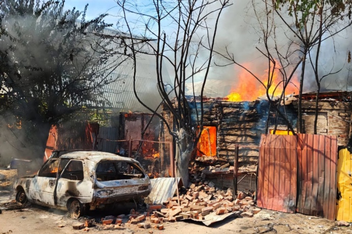 Произошел пожар. Уничтожены 2 частных дома и авто. Повреждена многоэтажка".