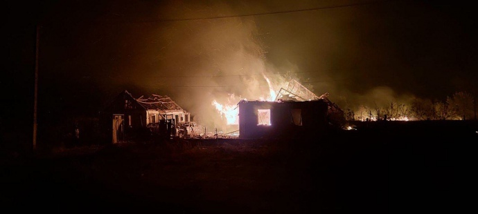 Дословно ОВА: "Из-за ударов управляемыми авиабомбами в одном из населенных пунктов Бериславского района уничтожен Пункт несокрушимости и жилые дома. Также на местах попаданий возникли пожары".