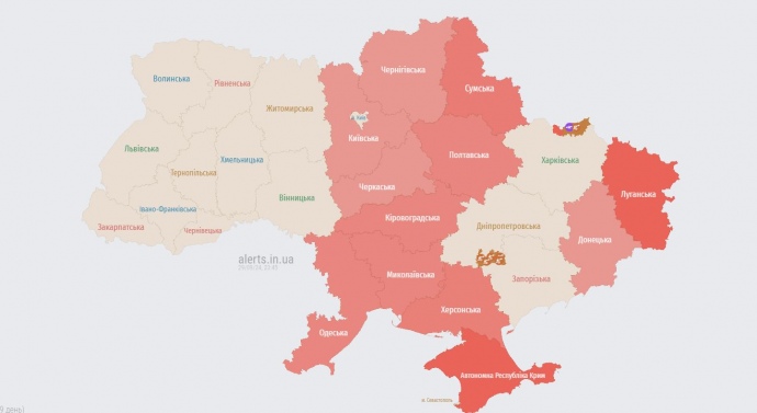 Вечером, 29 сентября российские войска запустили по Украине группу ударных БпЛА, в Киевской области и в ряде областей объявлена воздушная тревога.