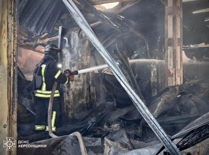 Российские оккупанты обстреляли один из микрорайонов Херсона, в результате чего вспыхнул пожар в складах и на площадке открытого хранения отходов производства.