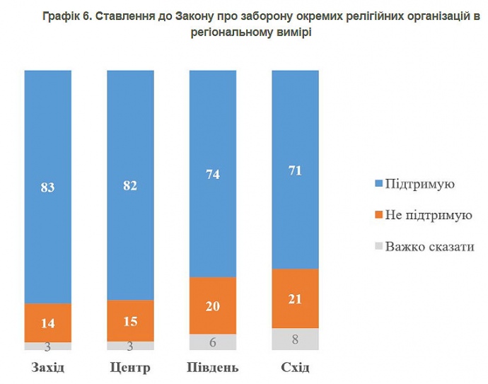 Абсолютное большинство украинцев поддерживают недавно принятый закон о запрете деятельности религиозных организаций, связанных с РПЦ.