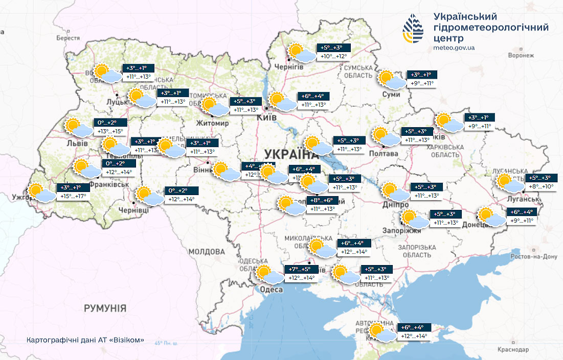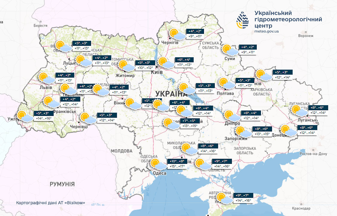 Детали: 24 октября в Украине без осадков, ночью 1-9° тепла, в Карпатах до 2° мороза, днем от 12-14° тепла севере, западе и востоке, до +15-17° на юге. Ветер преимущественно северо-западный, 3-8 м/с. Ночью и утром на западе страны туман.
