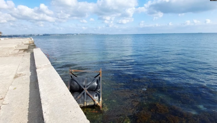 Во временно оккупированной Керчи течение принесло к берегу боновые заграждения, которые были установлены возле Крымского моста для защиты от атак морских беспилотников.