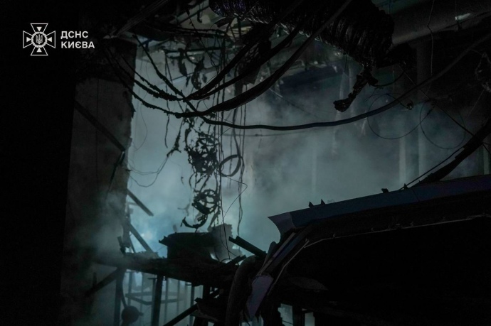 В Печерском районе Киева произошел пожар и разрушение конструкций многоэтажки в результате падения обломков вражеского дрона. Также были зафиксированы пожары в Соломенском, Оболонском, Подольском районах.