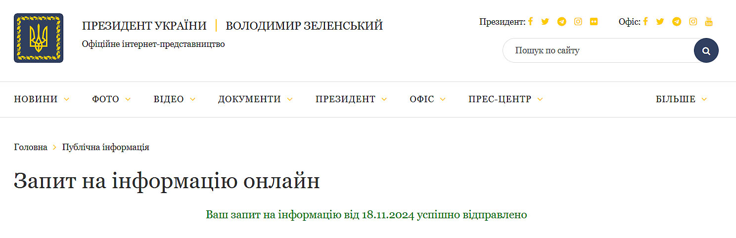 "Украинская правда" также направила запрос через форму "Запрос на информацию" размещенную на сайте ОП.