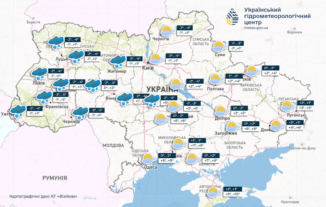 Укргидрометцентр предупреждает об ухудшении погодных условий – в ближайшие дни ожидаются снижение температуры воздуха, дождь и мокрый снег.