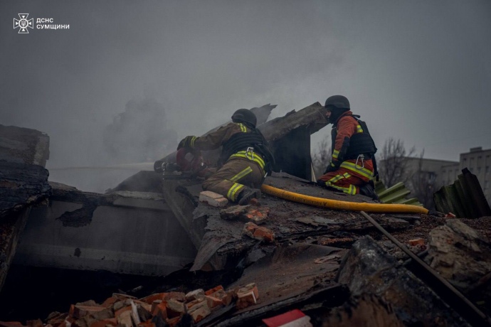 Детали: По словам президента в Сумах продолжается спасательная операция. Два человека, к сожалению, погибли, вероятно, под завалами есть еще человек. Повреждены ударом также дом и детский сад.