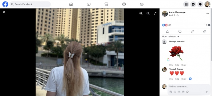 Впрочем, журналисты отметили, что на ее странице в Facebook в апреле 2024 года появилась фотография, которая, вероятно, сделана на знаменитой дубайской набережной с видом на здание Continental Tower.