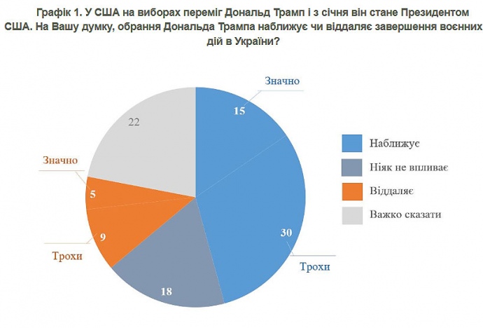 45% украинцев считают, что победа на американских выборах республиканца Дональда Трампа приближает мир в российско-украинской войне, тогда как почти 14% уверены, что мир становится более отдаленным.