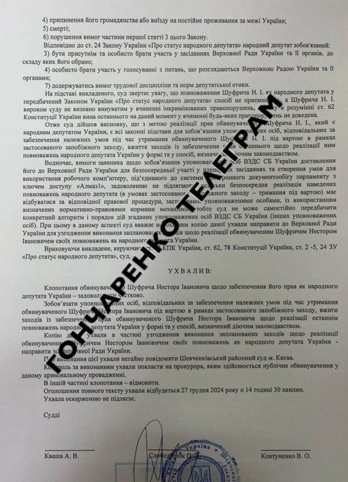Детали: Отмечается, что Шуфрич подал ходатайство, что хочет выполнять депутатские полномочия.