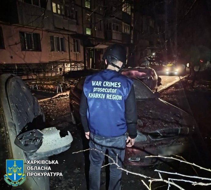 Дословно: "По данным следствия, 13 января около 19:00 войска РФ атаковали ударным беспилотником г. Чугуев. БпЛА попал во дворе пятиэтажки. В доме выбиты окна, повреждено авто.
