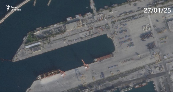 Как видно из сравнения фотографий за 18 и 27 января, Sparta II уже покинула порт, а вместе с ней с причала исчезла и значительная часть техники. Судно Sparta остается в порту, ближайшая к нему площадка, которая была почти пустой 18 января, теперь заставлена контейнерами.