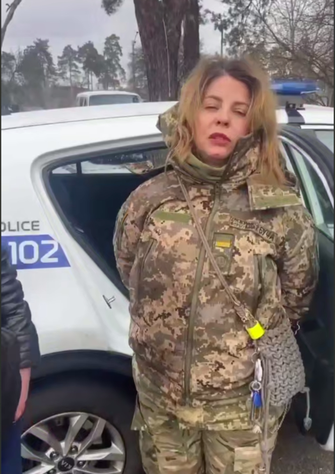 Как видно из видео, обнародованного в пабликах, женщина имеет нашивку "фонд Буча". Задержанная также "путается в показаниях", ведь то говорит, что среди мобилизованных в распределительном центре - ее муж, а позже, что там брат ее парня.