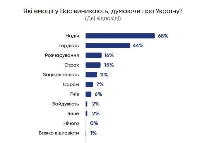 Опрос показал, что две третьи украинцев испытывают надежду и почти половина гордость, когда думают о родной стране.