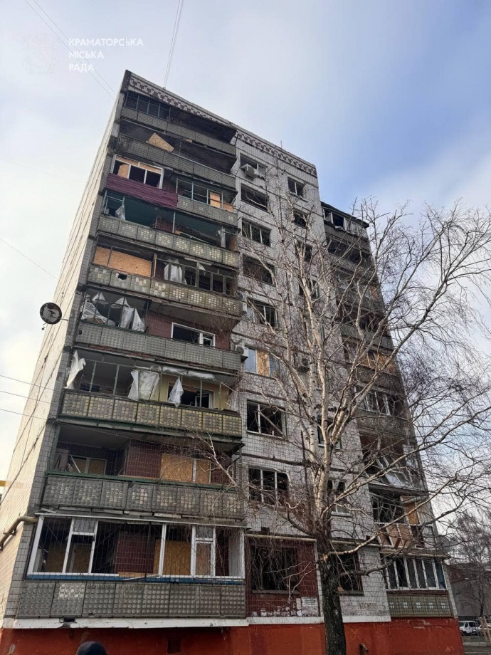 Прямая речь главы ГВА: "Поздно вечером 9 февраля россияне нанесли удар по Краматорску, используя ФАБ-500 с управляемым модулем. Под обстрел попала густонаселенная жилая застройка.