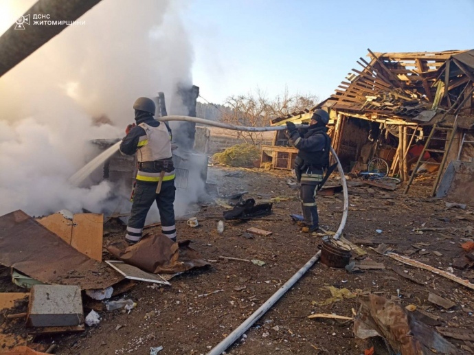 Три человека, среди которых двое детей, пострадали, а также разрушен жилой дом и хозяйственная постройка в результате российской атаки в Житомирской области.