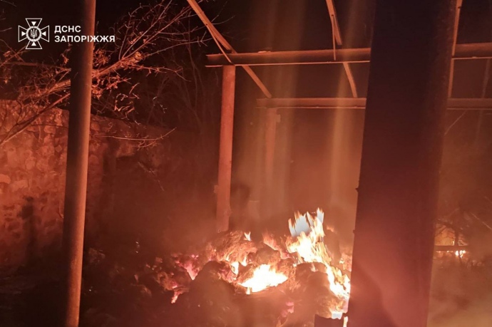 В Запорожском районе загорелись хозяйственная постройка и сеновал. Также по другому адресу горели обломки беспилотника.
