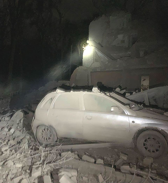 Глава ОВА также обнародовал фото с места удара. На них видно, что здание уничтожено. Также поврежден по меньшей мере один автомобиль.