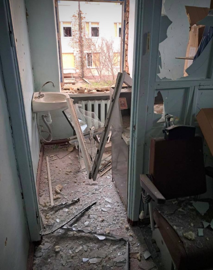 поврежденная больница в Семеновке, фото: Чаус в Telegram