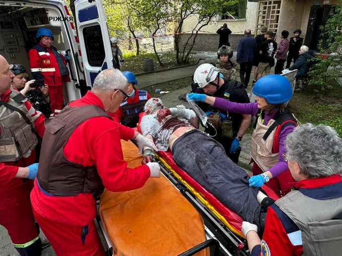 Что предшествовало: Днем 22 апреля российские войска нанесли удар по Запорожью, в результате чего один человек погиб, 19 взрослых и 4 детей получили ранения, повреждена многоэтажка и горели автомобили.