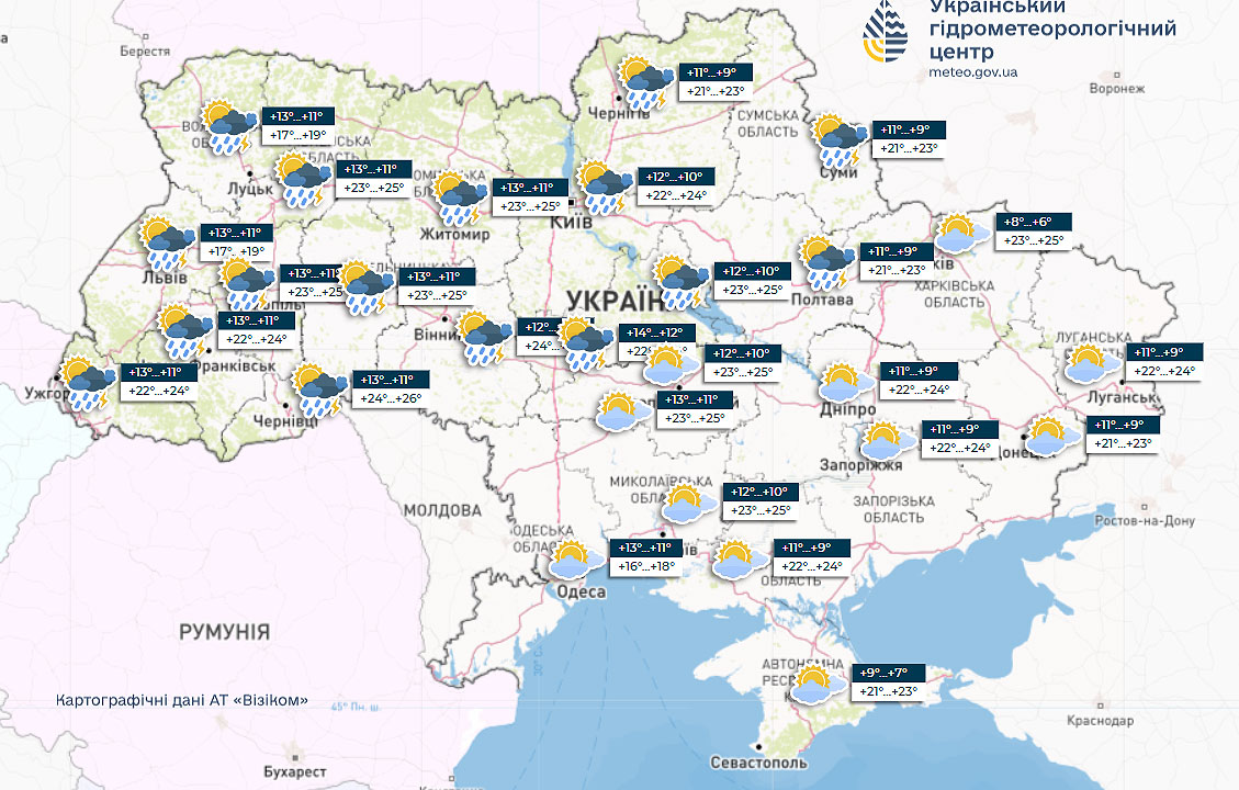 Дословно УГМЦ: "2 мая без осадков, только в Крыму и на востоке страны ночью местами небольшой дождь; температура ночью 1-6°, на юге до 10° тепла, в северных, большинстве западных и центральных областей на почве заморозки 0-5°, днем 11-16° тепла, на западе и юго-западе страны до 20°. Ветер северо-западный с переходом на юго-западный, 5-12 м/с".