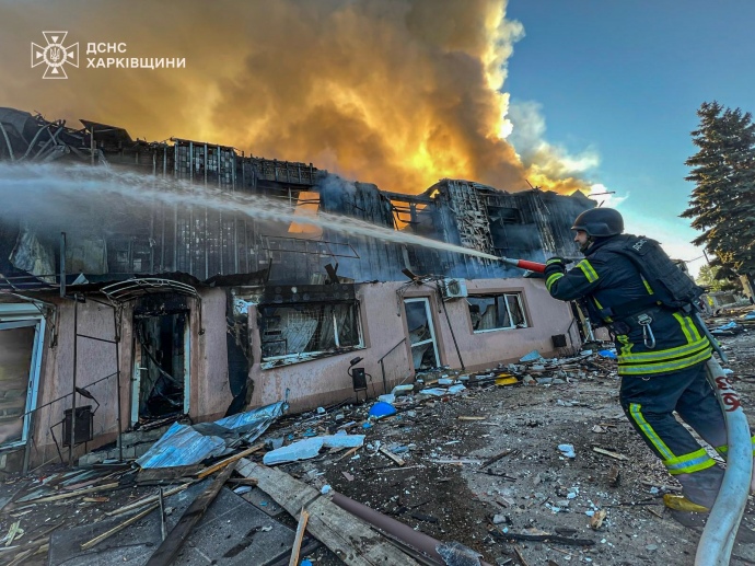 Из-за российской атаки на Харьковщине начался масштабный пожар