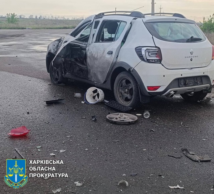 Дословно прокуратура: "8 мая около 7:05 российские военные ударили FPV-дроном по гражданскому автомобилю "Renault Sandero", который двигался по дороге возле с. Большие Проходы Харьковского района. Пострадали три женщины в возрасте 18, 30 и 58 лет".