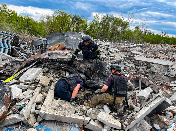 Детали: Сообщается, что 2 мая россияне ударом КАБ разрушили здание коммунального предприятия в Купянске и убили 2 работников. Тело одного из них оказалось глубоко под завалами строительных конструкций.