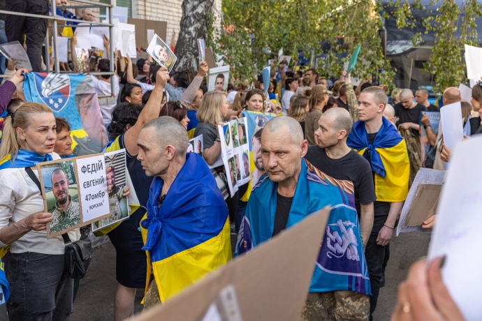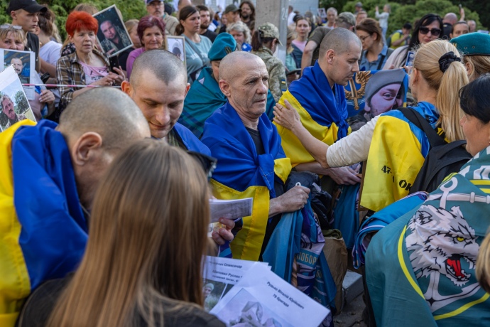 Обновлено: Также к только что освобожденным подходят родные пленных и спрашивают видели ли их близких в плену.