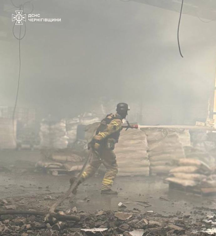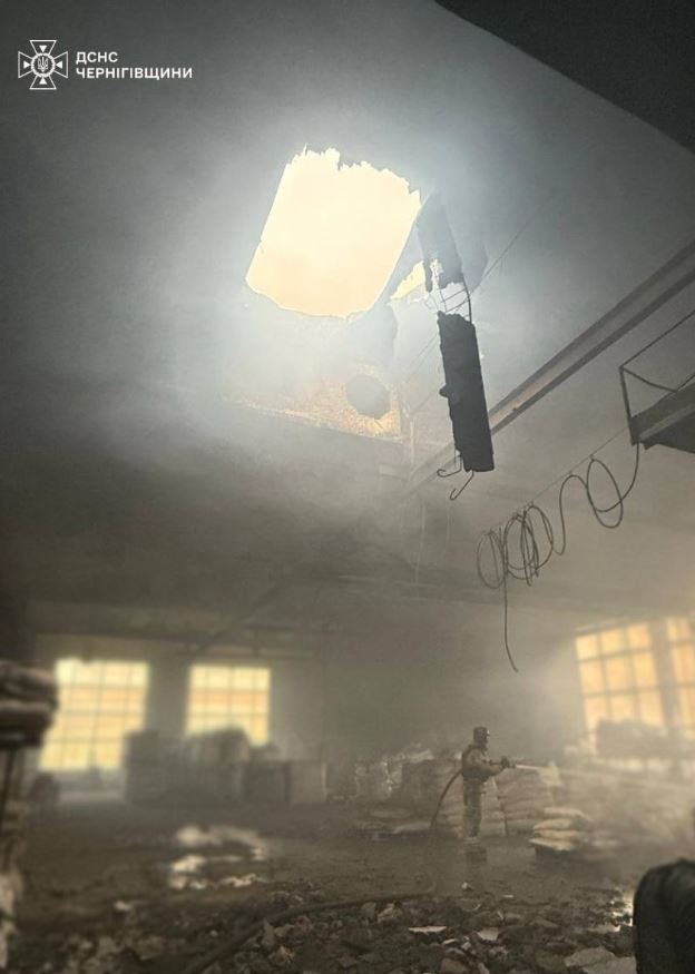 В понедельник утром российские захватчики ударили по одному из предприятий в Черниговской области, в результате чего возник масштабный пожар.
