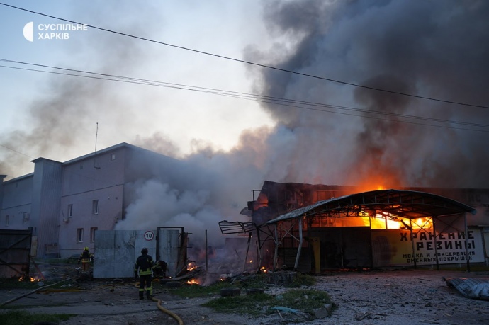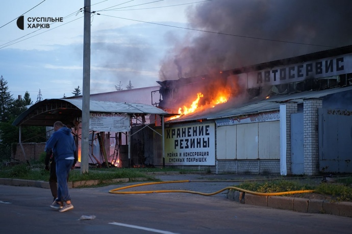 Синегубов сообщил, что в результате комбинированной вражеской атаки ракетами и БПЛА на Харьков пострадало гражданское предприятие, загорелся частный дом и здание СТО на площади 200 кв.м.