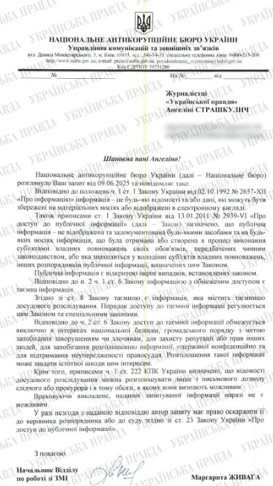 Источник: ответ НАБУ на запрос "Украинской правды"