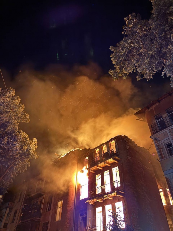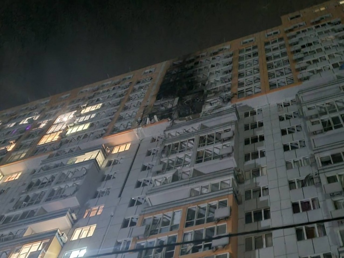 В 3:20 Труханов сообщил, что в результате попадания ударного беспилотника вспыхнул масштабный пожар, который буквально уничтожил жилой четырехэтажный дом.