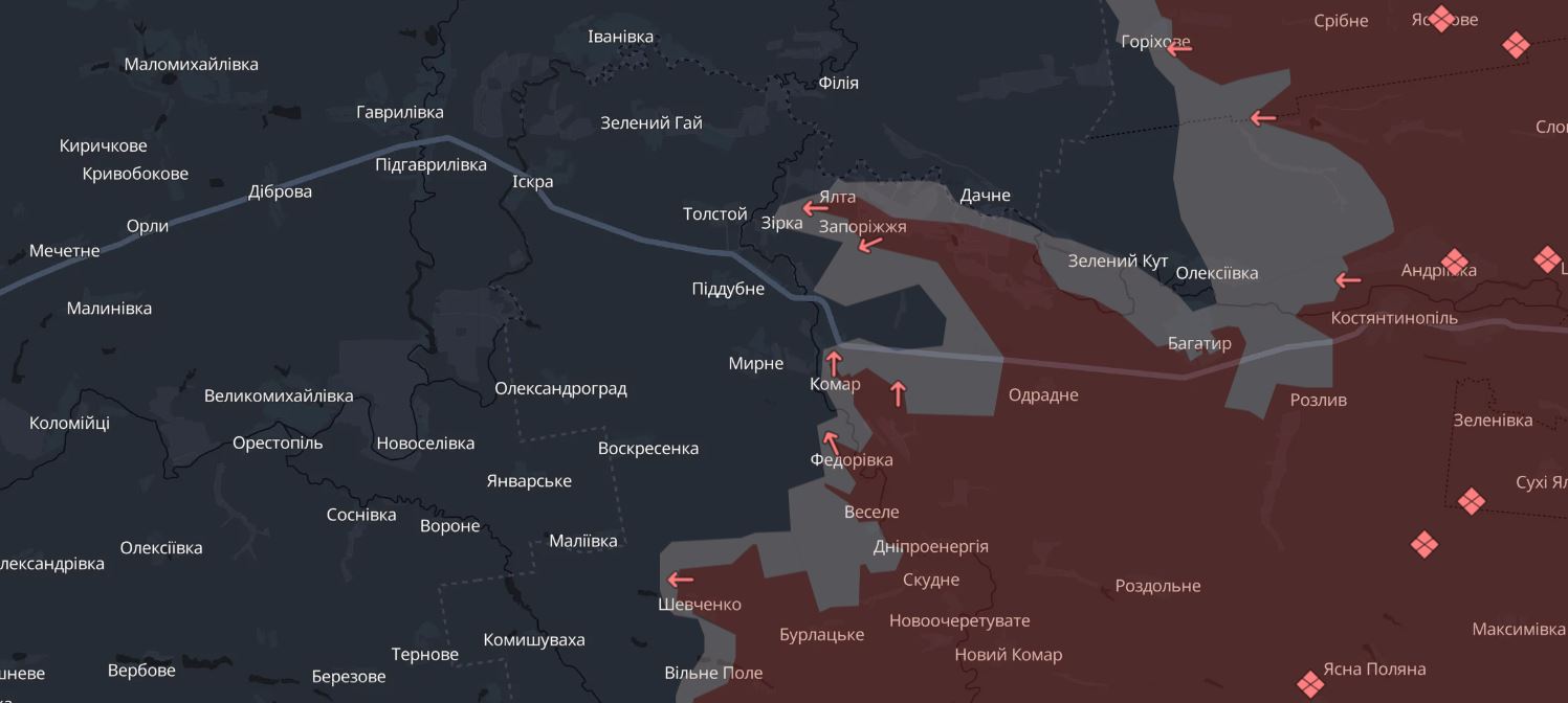 По данным мониторингового проекта DeepState, российские оккупанты заняли Новоселку, Запорожье и Отрадное Донецкой области, а также продвинулись возле Ялты, в Веселом и Степном.