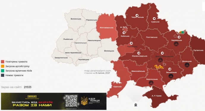 Воздушные силы предупредили об угрозе беспилотников и баллистики. От востока до запада страны распространяется воздушная тревога.