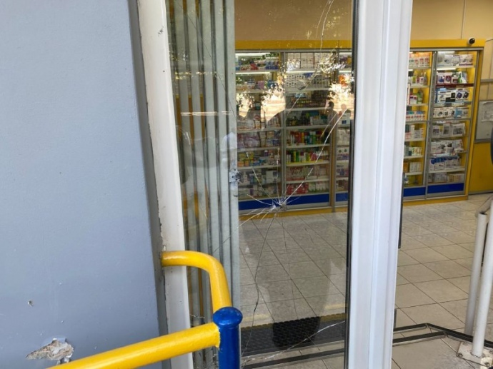 В результате обстрела повреждены банк, парикмахерская, магазины, спортклуб, аптека, многоэтажки.
