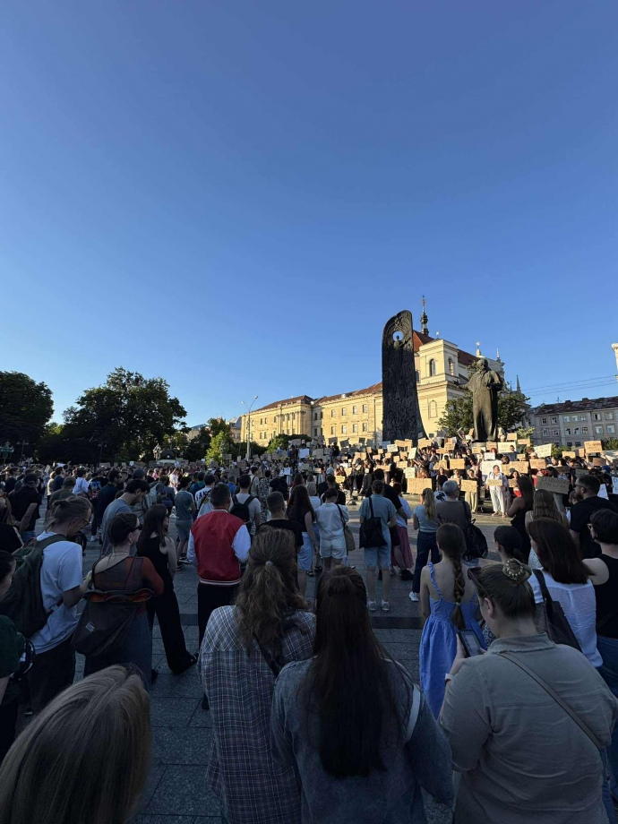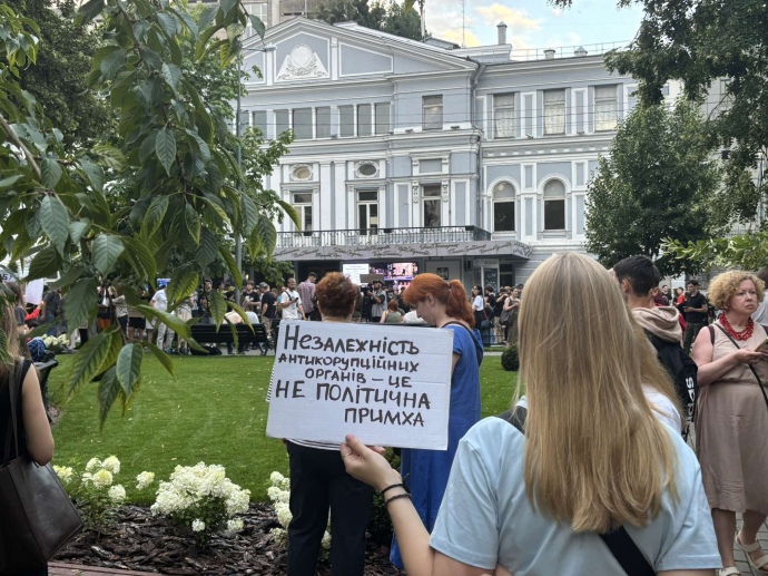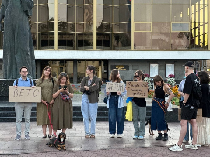 Ветеран российско-украинской войны Дмитрий Козятинский призвал киевлян собраться вечером во вторник на акцию протеста после принятия законопроекта о НАБУ и САП. Также акции начались во Львове, Днепре, Одессе и в Сумах.