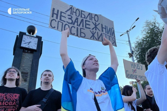 Вечером 23 июля в разных городах Украины прошли акции протеста из-за законопроекта №12414, который ограничивает полномочия НАБУ и САП. Накануне его подписал президент.