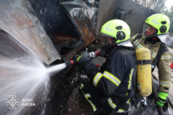 Детали: По данным главы Деснянской РГА, предприятие, где произошёл взрыв, расположено за ТЭЦ-6. В вагончике охранника произошло короткое замыкание проводки. Во время тушения огонь перекинулся на цистерну с маслом