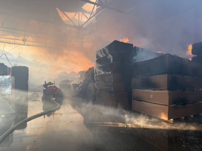 "Спасатели продолжают тушить пожар на территории производства", – отметил чиновник.