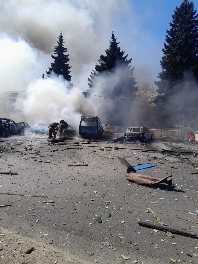 Детали: В результате ударов повреждены два жилых дома, рынок, магазин и административное здание. Также уничтожено несколько автомобилей.
