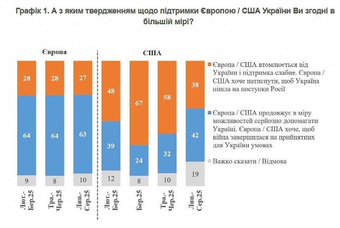 Дословно социологи: "По результатам последнего опроса 42% воспринимали США надежным союзником, а 38% считали, что США давят на Украину для неприемлемого мира".