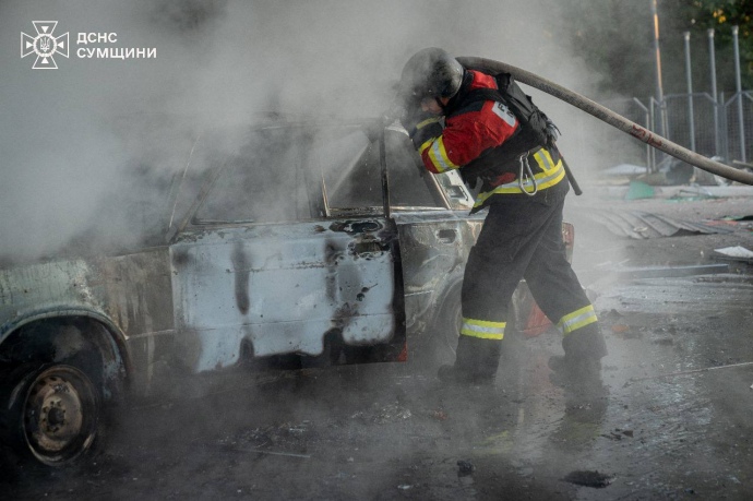 Прямая речь главы области: "Сегодня утром враг атаковал автозаправочную станцию на окраине Сумской общины. Около 5:40 российский БпЛА ударил по гражданскому автомобилю на территории АЗС. Возник пожар".