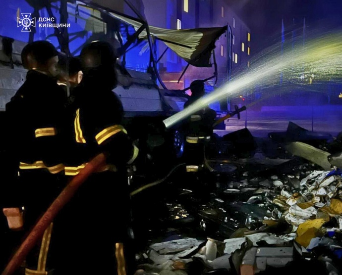 В Киевской области из-за атаки РФ горела стоянка ТЦ, во второй раз оккупанты ударили по спасателям