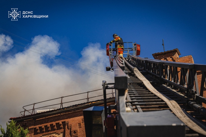 Дословно ГСЧС: "Харьков: утром российские войска нанесли удар БпЛА по учебному заведению в Слободском районе города. По предварительным данным, пострадали 2 женщины. В результате попадания повреждена кровля здания учреждения, возник пожар на площади 150 кв. м".