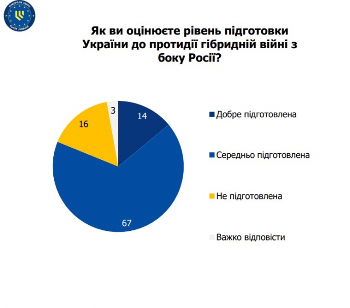 Две трети украинцев (67%) оценивают готовность страны к противодействию гибридной войне как умеренную.