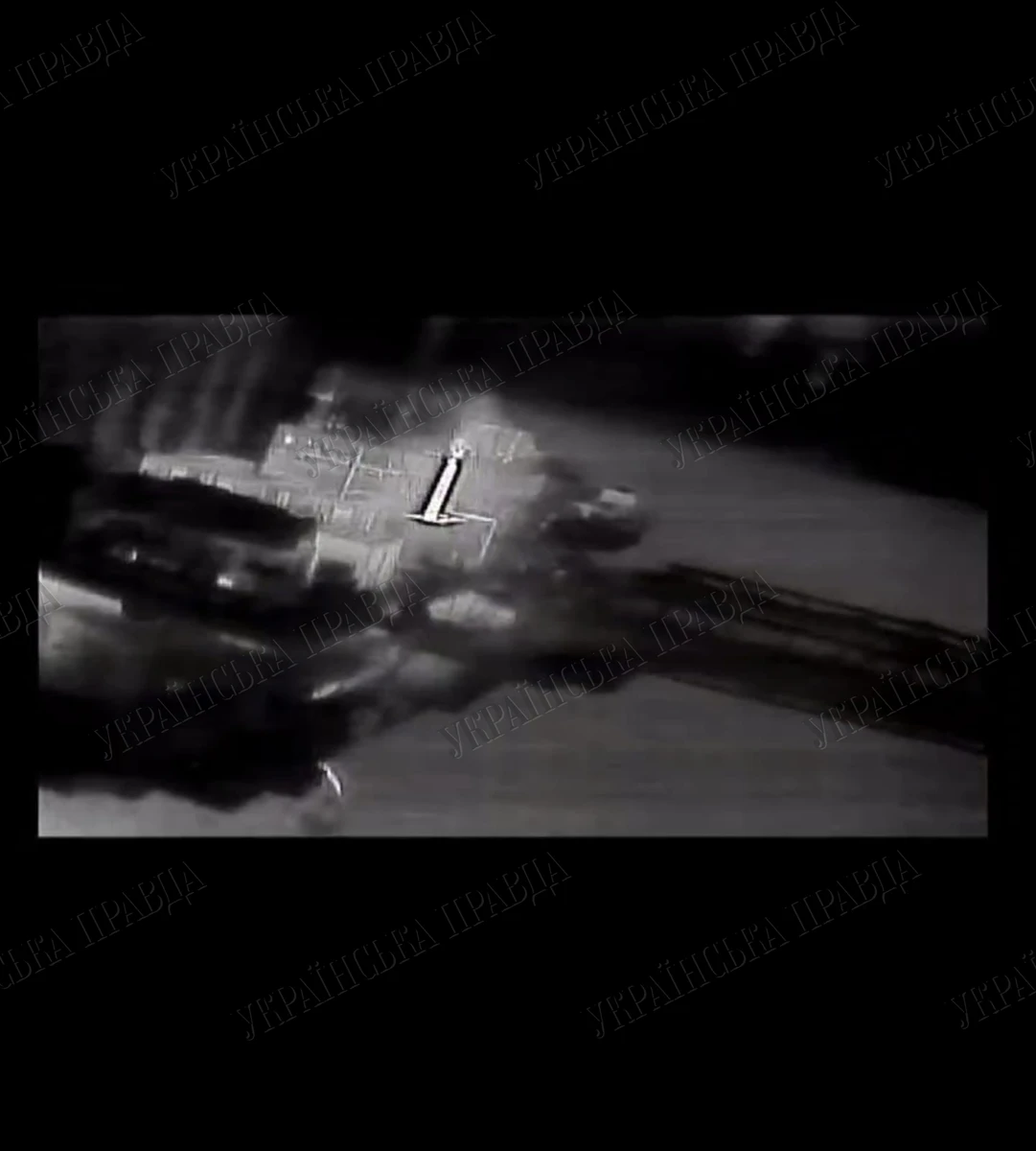 Бортовая камера беспилотника зафиксировала успешное попадание в район газотурбинной установки платформы.